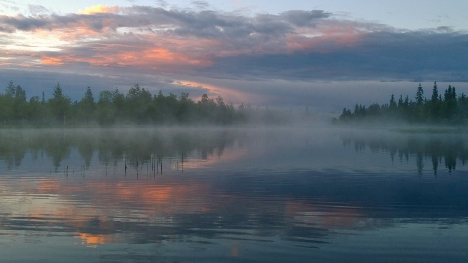 Läheiseltä suolta alkoi usva hiipiä järven pintaan.