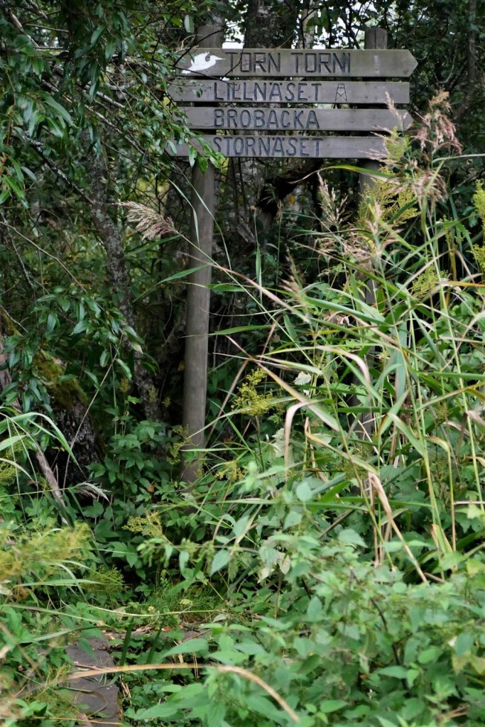 Pieni kohdekyltti on vähällä jäädä meiltä huomaamatta. Se kertoo että ylhäällä odottaa Stora Näset.
