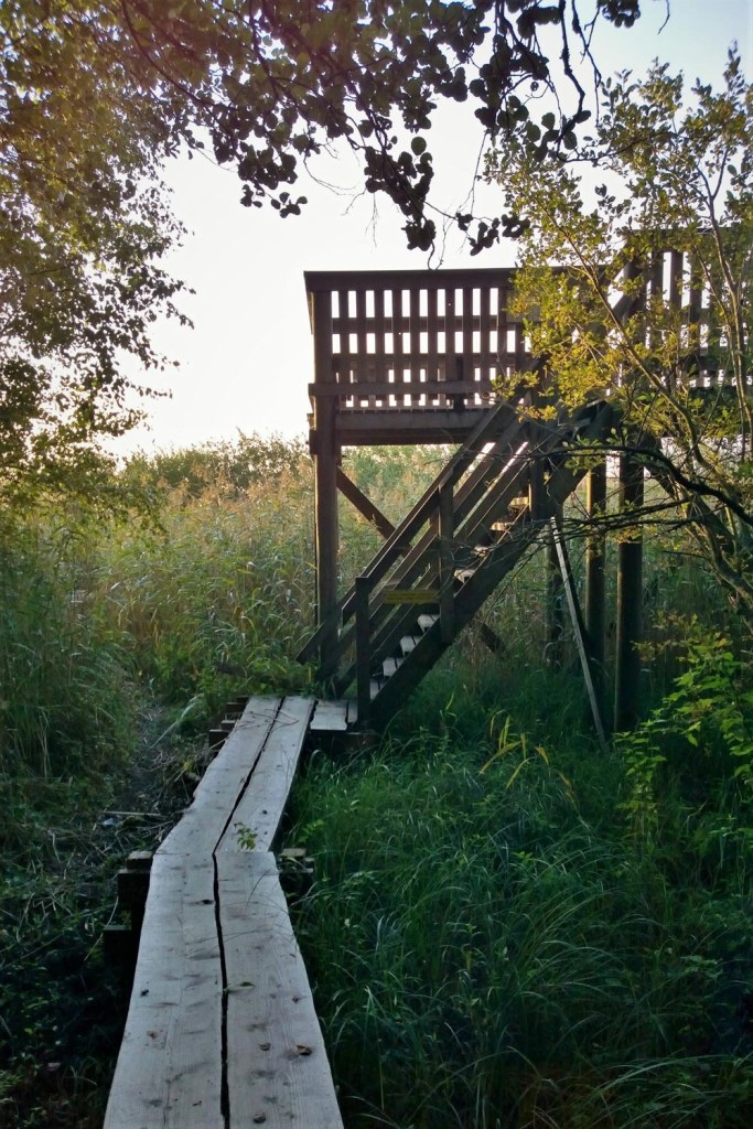 Hetken kuluttua ohitamme uudelleen puiset viitat. Polku johdattelee meitä kohti uutta lintutornia, joka on nimetty Pelikaanitorniksi.