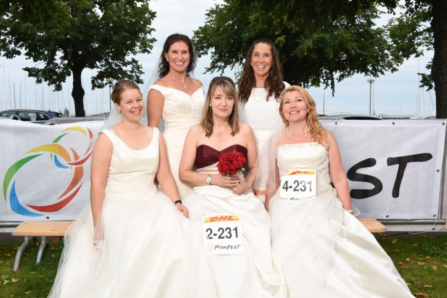 On upeaa seistä juoksutapahtuman lähtöviivalla numerolappu rinnassa. Tänä vuonna huomasin että vielä hienompaa on seistä numerolappu rinnassa – häämekko päällä.